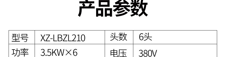 XZ-LBZL210圓頭六頭電陶爐,快餐外賣搶著買,一爐百烹快速出餐。煎炒燜煮煲等各樣花式,樣樣行,單頭3500W大火力實現快速出餐不等待做菜重要的就是火候,火力不足一切都是白搭。