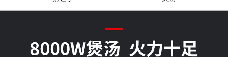 八千瓦平爐(磁控) XZ-KAM8C,八檔磁控,滿足各種烹飪。蒸煮燉煲炒,無明火模式。不同食材專屬火力、大功率、高效率。8000W煲湯火力十足具有聚能技術,大麵積均速加熱,輕鬆製作美食。