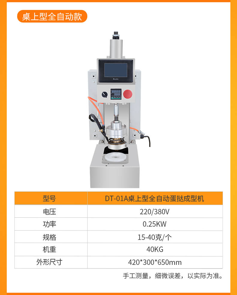 名稱DT-04全自動蛋撻成型機 電源220V/380V 功率0.25KW 產量請谘詢銷售員 尺寸680*650*1500mm 重量80KG 規格15-40克/個 其他