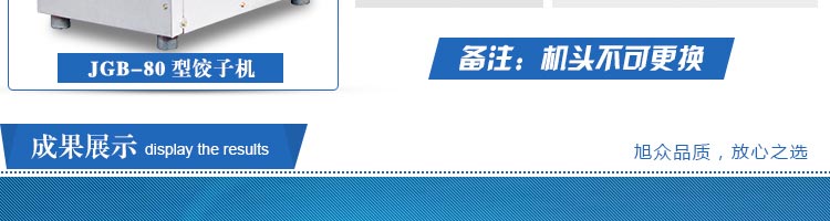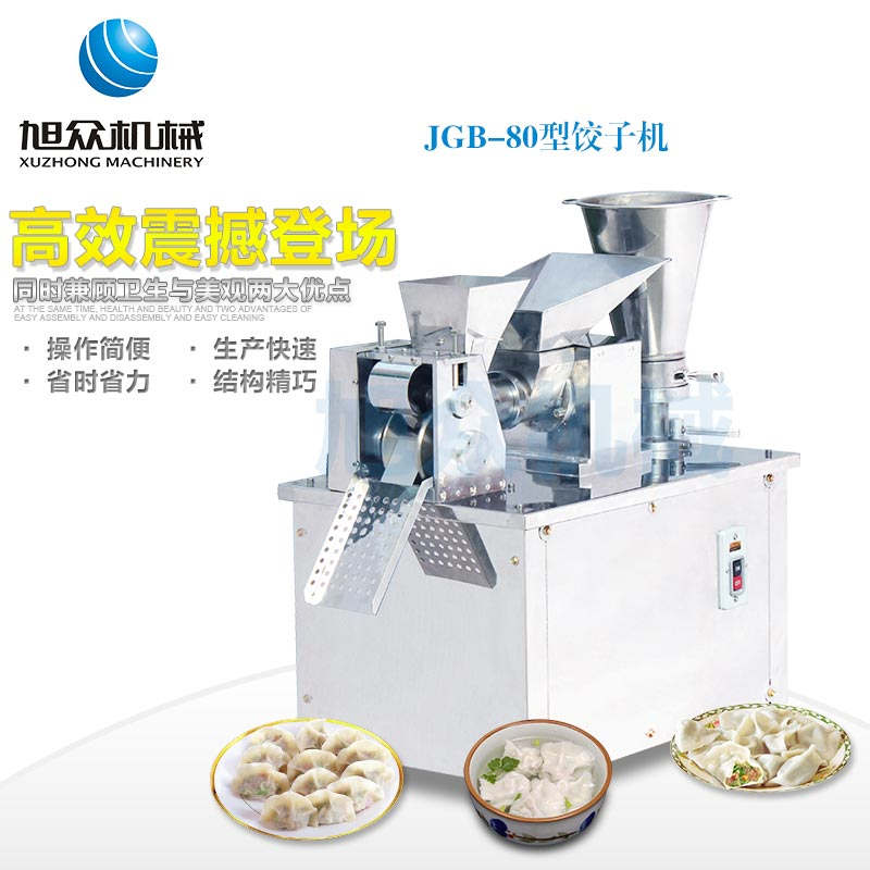 JGB-80型號餃子機,本機是一款可生產各種肉餡、肉菜混合餡、全菜餡及其他種餡餃子的設備。包製出來的餃子可蒸、煮、炸、煎等多種調理。適用於賓館、飯店、餐廳、團體食堂加工,幼兒園、速凍餃子生產。