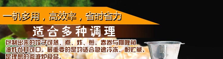 JGB-120-5A型輸送帶餃子機,本機是一款可生產各種肉餡、肉菜混合餡、全菜餡及其他種餡餃子的設備。一機多用途,隻要更換模具,就可製作不同的食品,如春卷、餛飩、咖喱角、鍋貼等。適用於賓館、飯店、餐廳、團體食堂加工,幼兒園、速凍餃子生產。
