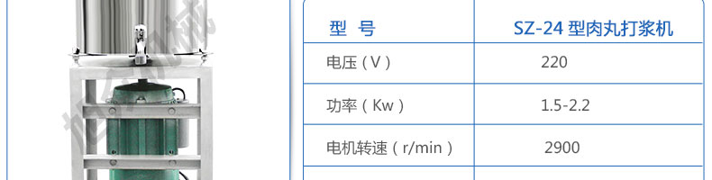 SZ-24型高速肉丸打漿機,高速肉丸打漿機選用不鏽鋼,生產過程中改善了肉質脂肪纖維,生產出的丸子外表光滑細膩、低脂、口感爽脆、彈性好、韌性好,是潮州肉丸的專用打漿機。