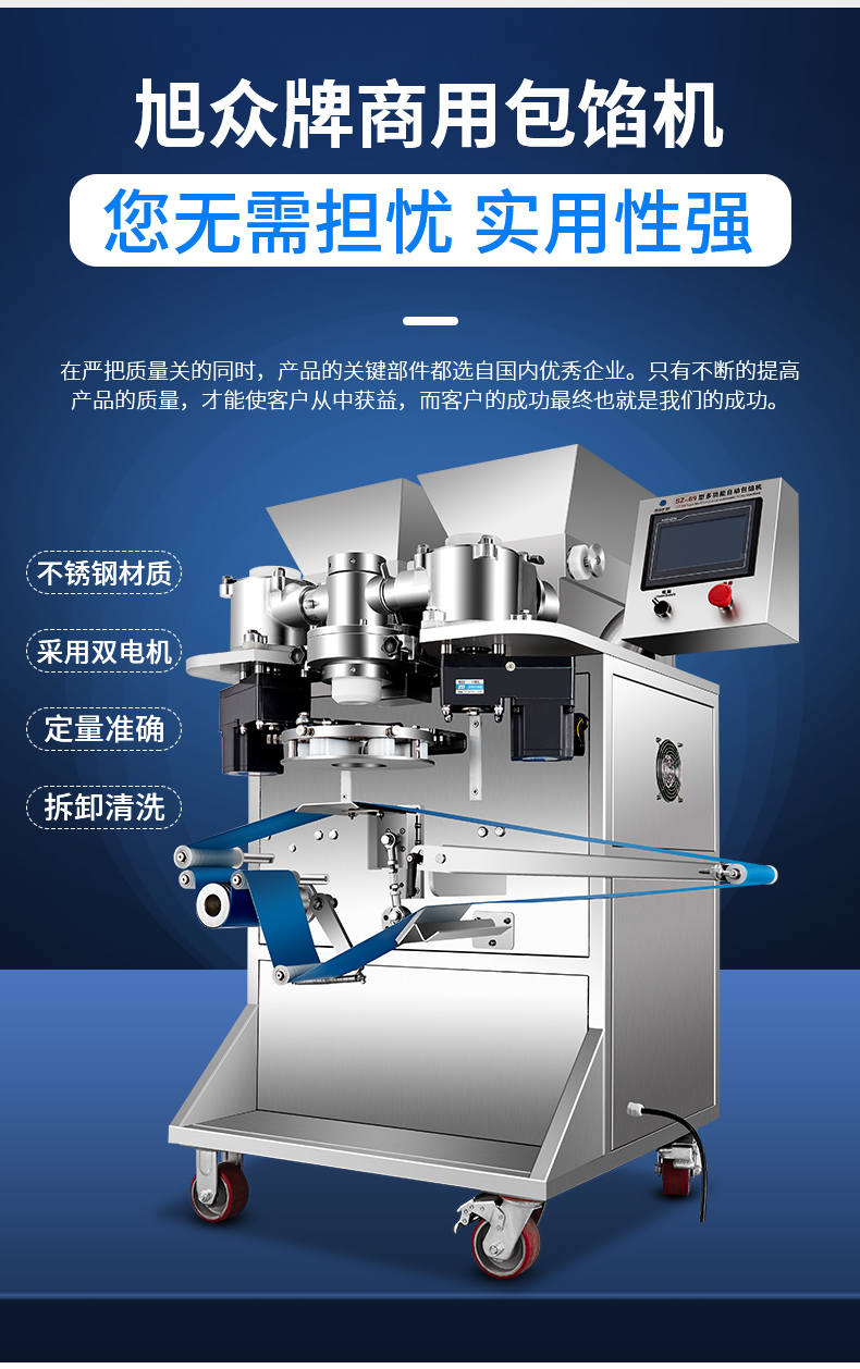 SZ-69型多功能自動包餡機,餡鬥/麵鬥,可整個拆卸清洗,增加了自動拔料功能。月餅鳳梨酥紅桃裸湯圓南瓜餅軟餡餅。在嚴把質量關的同時,產品的關鍵部件都選自國內優秀企業。隻有不斷的提高產品的質量,才能使客戶從中獲益,而客戶的成功最終也就是91麻豆精品秘密入口的成功。